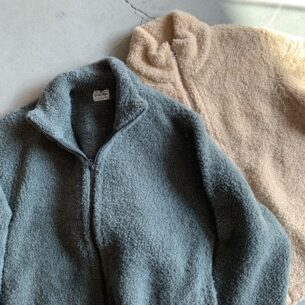 more Read ...WOOL FLEECE BLOUSON col.BEIGE, GREEN ¥57,200 ウールベースのファーモールを使用した、ニットフリースブルゾン ...