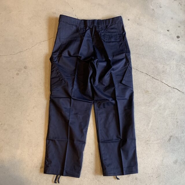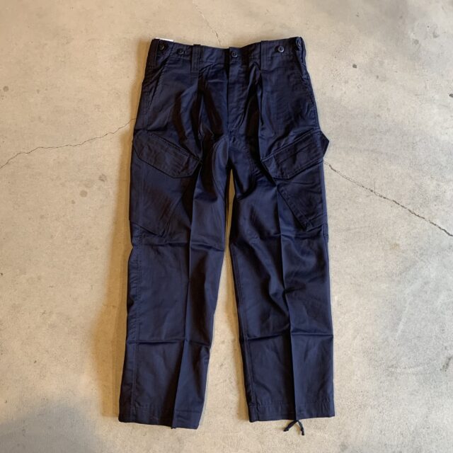 フラップポケット、トップボタンはすべてパラシュートボタンを使用し、股の部分には丸いあて布があてられ、裾はドローコードが通してあります