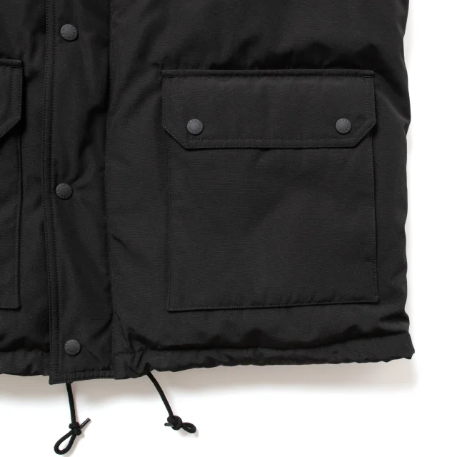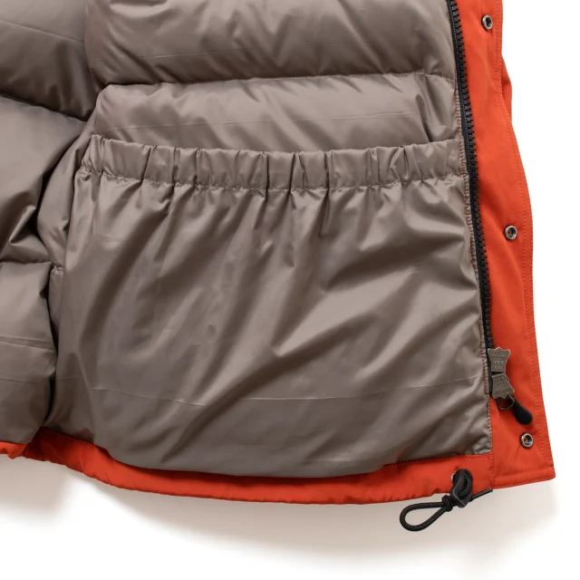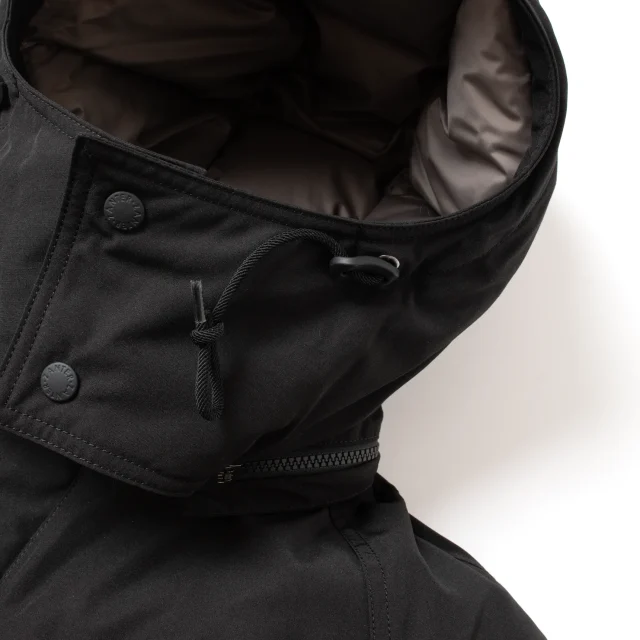表素材は、軽量でありながら、肉厚感もあり高級感のあるポリエステル×コットンの高密度織物を採用し、裏素材はダウンの暖かさを肌に感じさせる高密度ポリエステルを採用