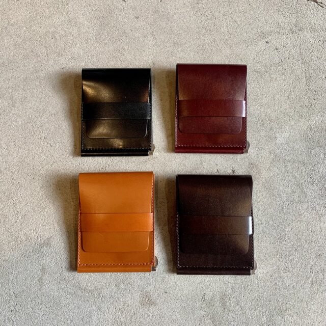 こつこつ浅草の職人さんに作っていただいて、鈍く光るBlack、いぶし銀のBurgundy、アジがですぎるCamel、元ネタのBrownです
