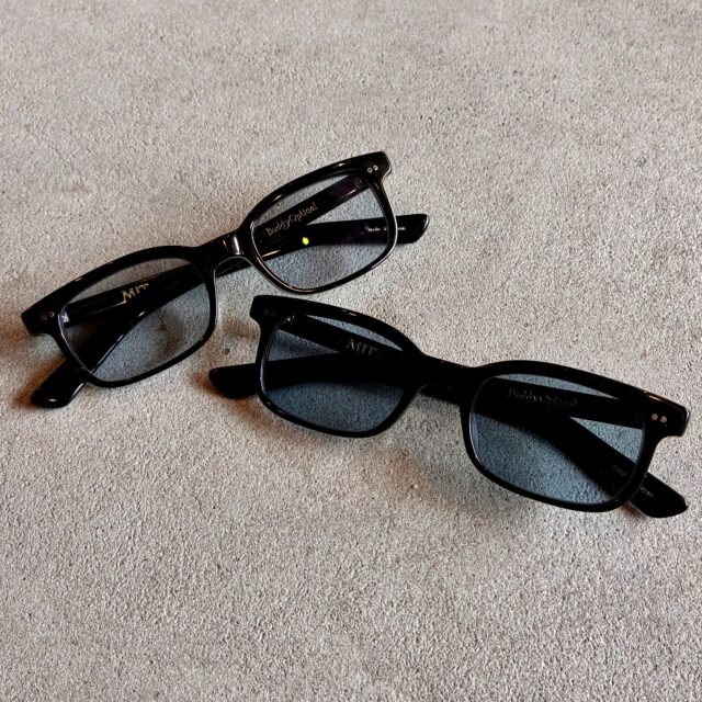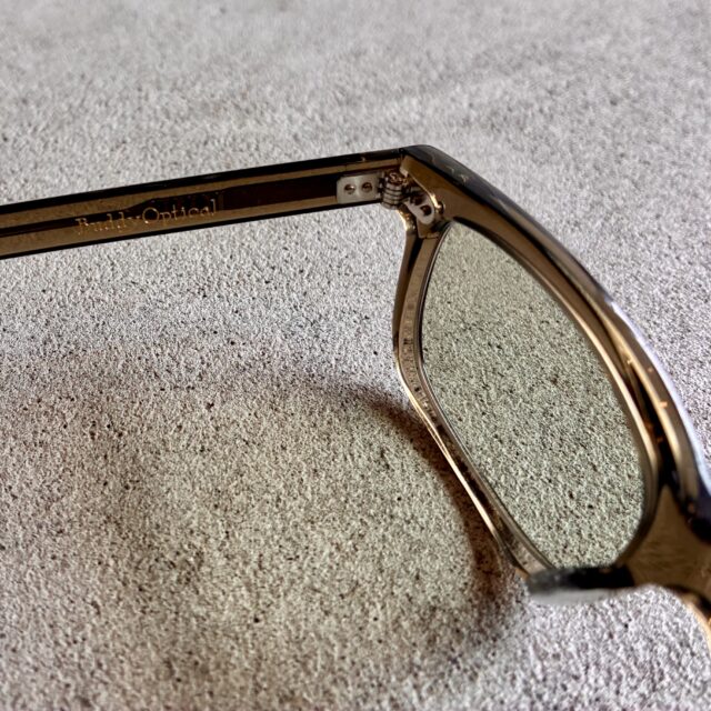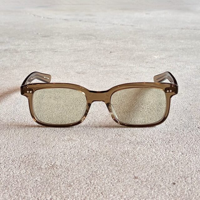 シンプルなスクウェアフロントに太めのテンプルを合わせることでクリエイティブな印象を与えてくれます