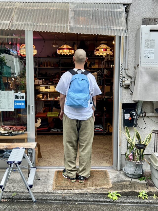 素材は古着のクタクタになったバックパックの感じが好きなので、やわらかめの100%ポリエステル、撥水加工付き