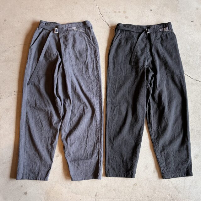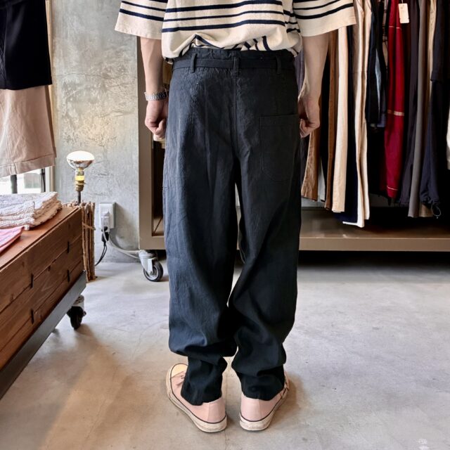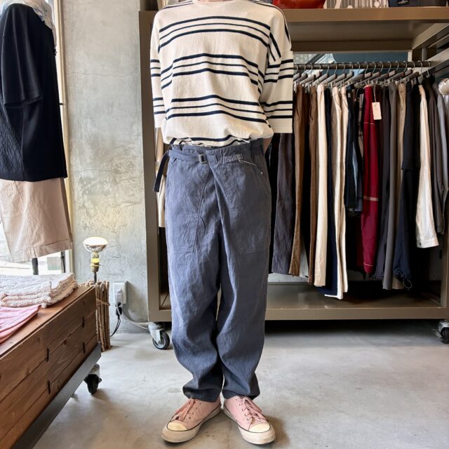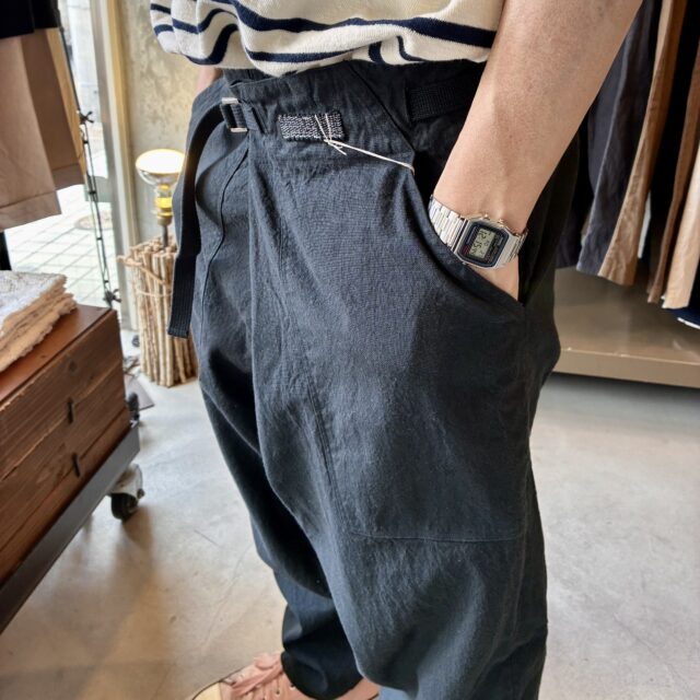デニムのHAKAMA-PANTSに比べると軽い着心地で、より気負わず日常に取り入れやすい風合いに仕上がっています