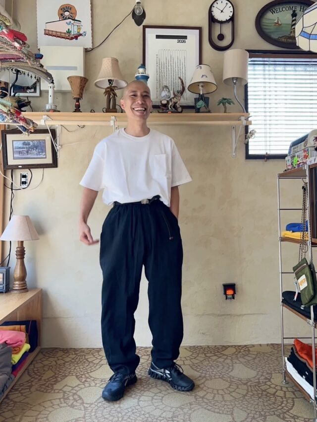型は少しテーパードしたわたり太めのゆったりシルエット